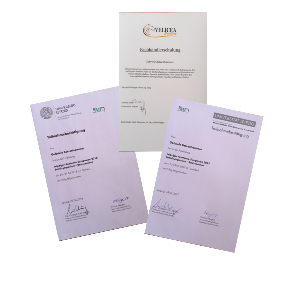 In den letzten Jahren habe ich mich nun auf den Vertrieb von Sätteln der Marke Velicea konzentriert. In meinen Augen bieten sie dem Reiter einen bequemen, weichen, mittigen Sitz und für die Pferde ergibt sich ein gutes Tragegefühl durch die gute Anpassbarkeit und den mittigen Sitzschwerpunkt dieser Sättel (vgl. Kapitel Sattelberatung).